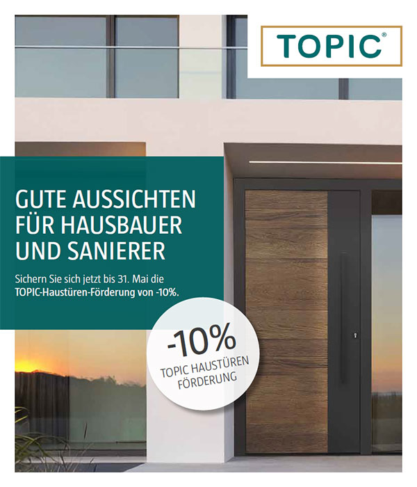 Sichern Sie sich jetzt bis 31. Mai die TOPIC-Haustüren-Förderung von -10%.