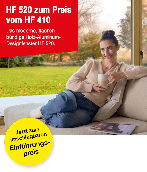 Jetzt zum unschlagbaren Einführungspreis. Das moderne, flächenbündige Holz-Aluminium-Designfenster HF 520.